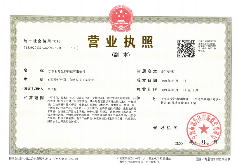 賬戶名:寧波明舟生物科技有限公司
