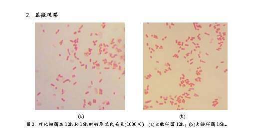 2、 將實(shí)驗(yàn)菌株細(xì)菌在NA斜面置于37℃培養(yǎng),斜面生長至12h時(shí),取菌進(jìn)行革蘭氏染色,油鏡鏡檢。斜面繼續(xù)培養(yǎng)至16h時(shí),同樣,取菌鏡檢。