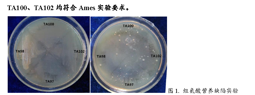 綜合以上結(jié)果,本實(shí)驗(yàn)選用的鼠傷寒沙門(mén)氏組氨酸缺陷型菌株TA97、TA98、TA100、TA102均符合Ames實(shí)驗(yàn)要求。