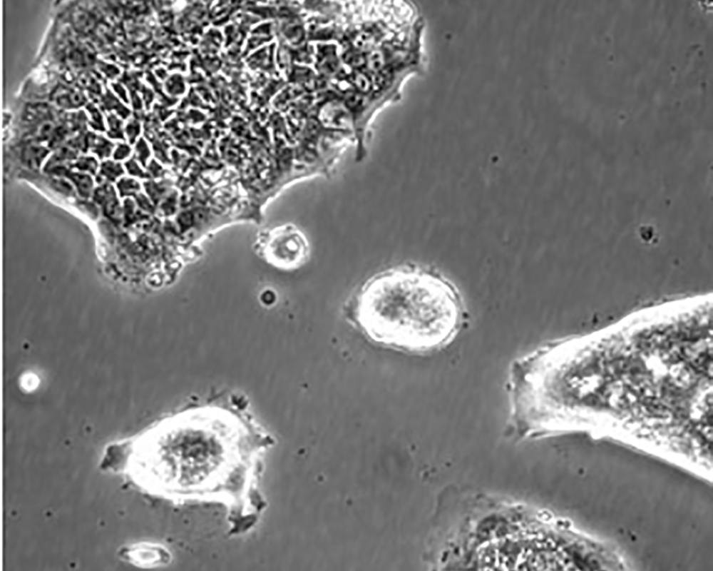 如果細(xì)胞密度達(dá)80%-90%,即可進(jìn)行傳代培養(yǎng)。1. 棄去培養(yǎng)上清,用不含鈣、鎂離子的PBS潤洗細(xì)胞1-2次。2. 加2ml消化液(0.25%Trypsin-0.53mM EDTA)于培養(yǎng)瓶中,置于37℃培養(yǎng)箱中消化1-2分鐘,然后在顯微鏡下觀察細(xì)胞消化情況,若細(xì)胞大部分變圓并脫落,迅速拿回操作臺,輕敲幾下培養(yǎng)瓶后加少量培養(yǎng)基終止消化。3. 按6-8ml/瓶補(bǔ)加培養(yǎng)基,輕輕打勻后吸出,在1000RPM條件下離心4分鐘,棄去上清液,補(bǔ)加1-2mL培養(yǎng)液后吹勻。4. 將細(xì)胞懸液按1:2到1:5的比例分到新的含8ml培養(yǎng)基的新皿中或者瓶中 |