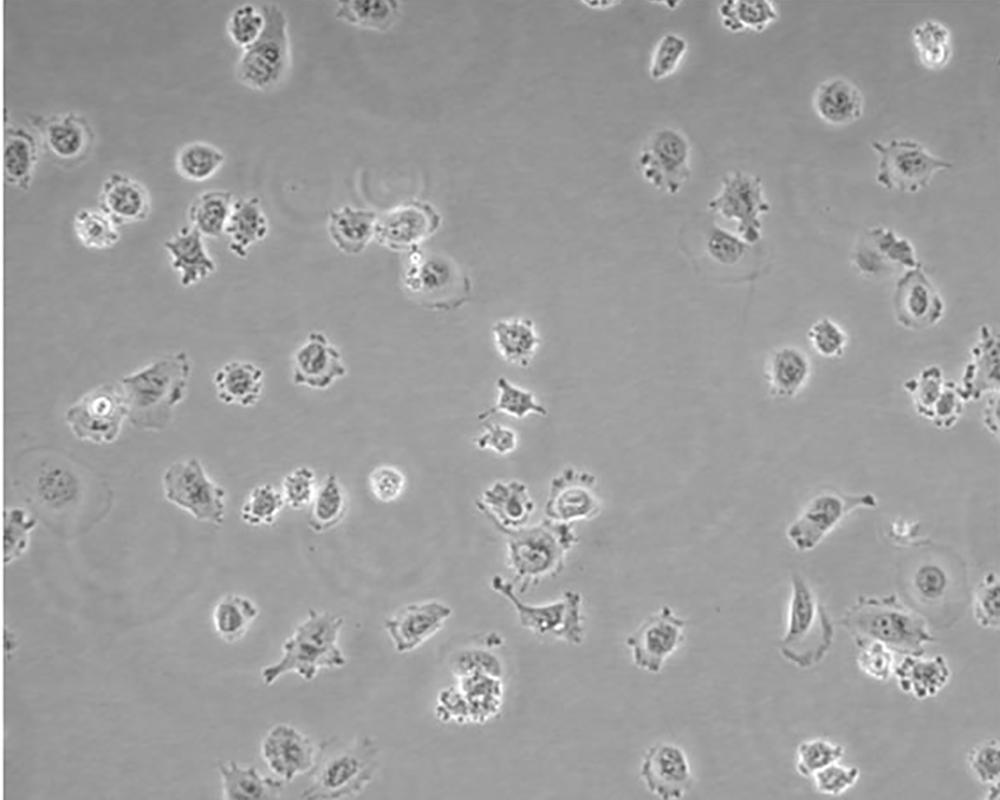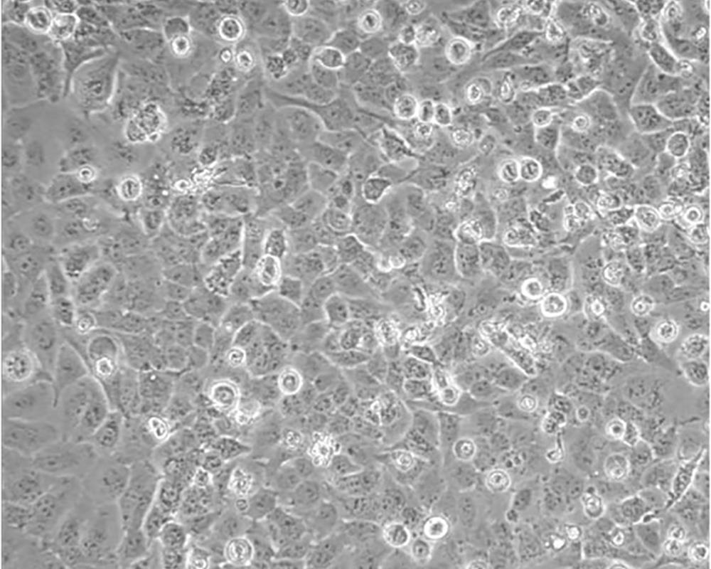 該細胞源于一位51歲患有非小細胞肺癌黑人男性患者的治療前的腫瘤組織,表達C-myc、L-myc、v-src、v-abl、v-erb B、c-raf 1、Ha-ras、Ki-ras、N-ras RNAs;該細胞攜帶K-ras 12突變;p53基因246位密碼子突變ATC→ATG;表達PDGF A和B鏈的異源mRNA;表達TGFα、TGFβ和EGFR;角蛋白 5、8和18陽性,波形蛋白陽性,神經(jīng)絲蛋白陰性,左旋多巴脫氫酶陰性;據(jù)報道,在軟瓊脂中該細胞形成克隆的效率為9.7%。 |