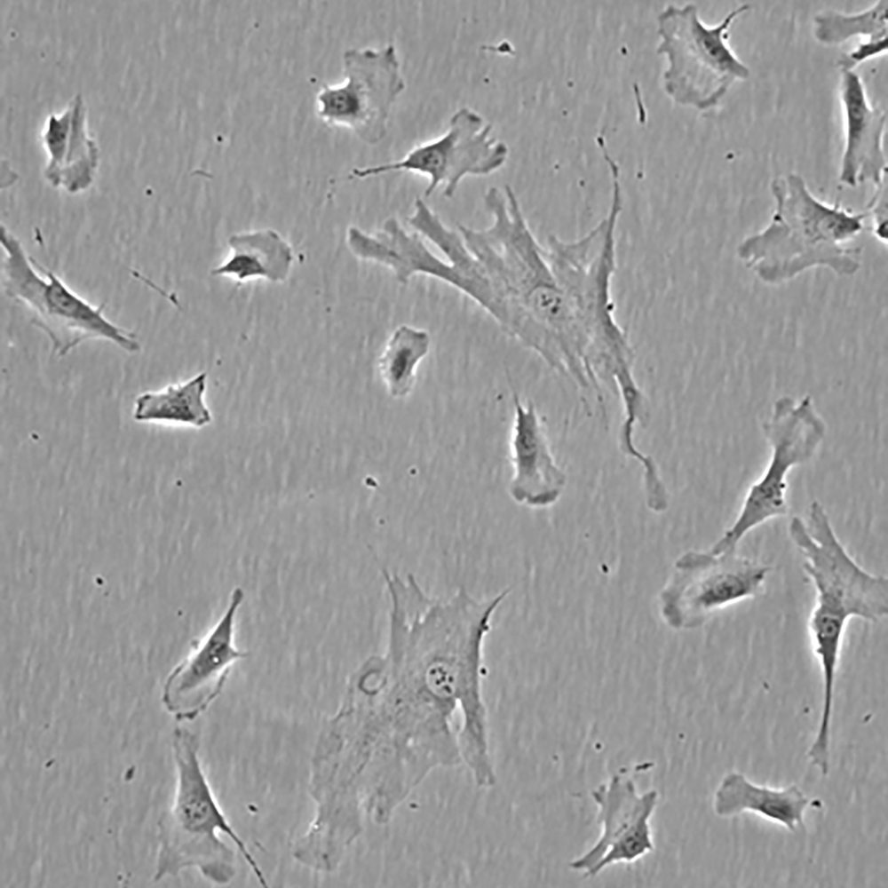 如果細(xì)胞密度達(dá)80%-90%,即可進(jìn)行傳代培養(yǎng)。1. 棄去培養(yǎng)上清,用不含鈣、鎂離子的PBS潤洗細(xì)胞1-2次。2. 加2ml消化液(0.25%Trypsin-0.53mM EDTA)于培養(yǎng)瓶中,置于37℃培養(yǎng)箱中消化1-2分鐘,然后在顯微鏡下觀察細(xì)胞消化情況,若細(xì)胞大部分變圓并脫落,迅速拿回操作臺,輕敲幾下培養(yǎng)瓶后加少量培養(yǎng)基終止消化。3. 按6-8ml/瓶補加培養(yǎng)基,輕輕打勻后吸出,在1000RPM條件下離心4分鐘,棄去上清液,補加1-2mL培養(yǎng)液后吹勻。4. 將細(xì)胞懸液按1:2到1:5的比例分到新的含8ml培養(yǎng)基的新皿中或者瓶中。 |