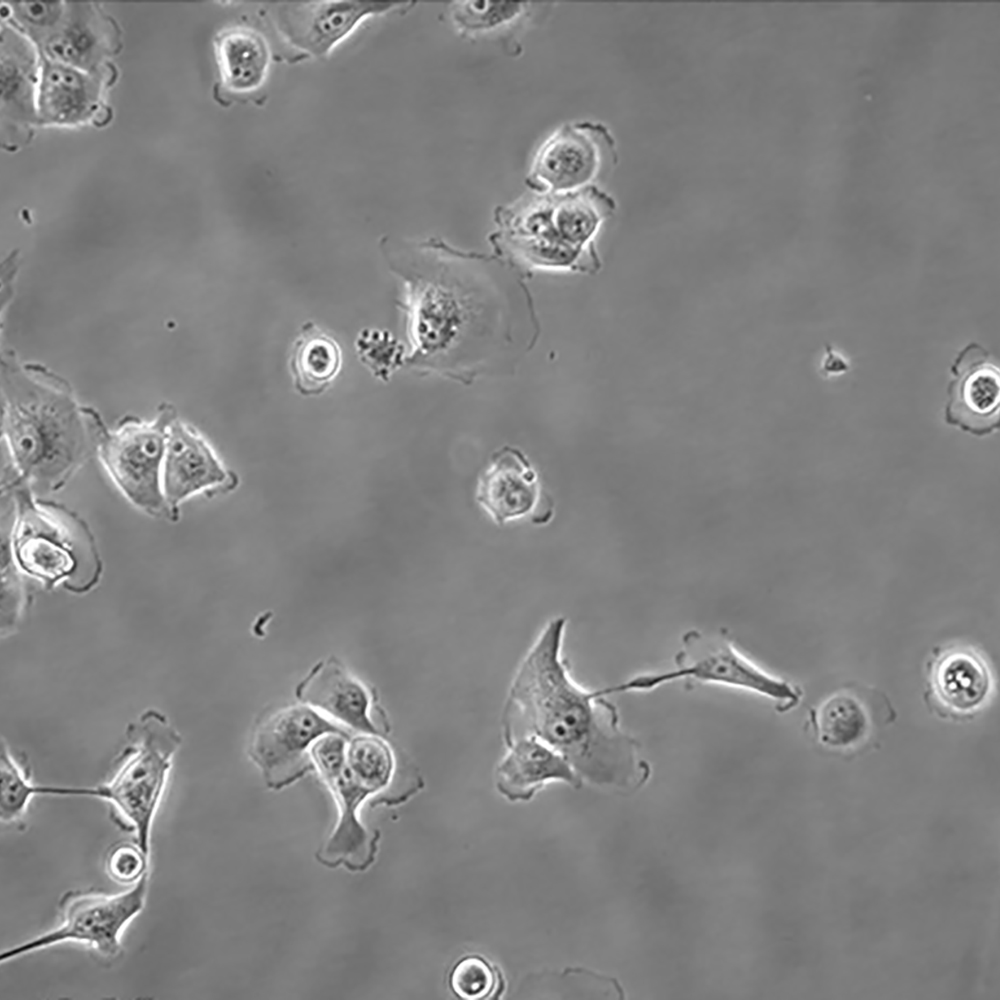 待細胞生長狀態(tài)良好時,可進行細胞凍存。下面T25瓶為例;1.細胞凍存時,棄去培養(yǎng)基后,PBS清洗瓶底1-2次后加入1ml胰酶,細胞變圓脫落后,加入2ml完全培養(yǎng)基終止消化,可使用血球計數(shù)板計數(shù)。2.1000RPM離心5分鐘去掉上清。用血清重懸浮,加DMSO至最終濃度為10%。加入DMSO后迅速混勻,按每1ml的數(shù)量分配到凍存管中,注意凍存管做好標(biāo)識。本公司按每個凍存管細胞數(shù)目大于1X106個細胞凍存。3.將凍存管置于程序降溫盒中,放入-80度冰箱,至少2個小時以后轉(zhuǎn)入液氮灌儲存。記錄凍存管位置以便下次拿取。 |