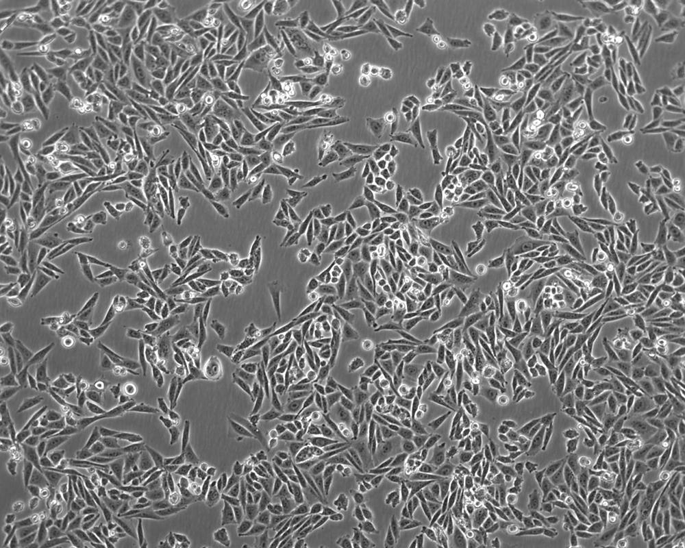 如果細胞密度達80%-90%,即可進行傳代培養(yǎng)。1. 棄去培養(yǎng)上清,用不含鈣、鎂離子的PBS潤洗細胞1-2次。2. 加2ml消化液(0.25%Trypsin-0.53mM EDTA)于培養(yǎng)瓶中,置于37℃培養(yǎng)箱中消化1-2分鐘,然后在顯微鏡下觀察細胞消化情況,若細胞大部分變圓并脫落,迅速拿回操作臺,輕敲幾下培養(yǎng)瓶后加少量培養(yǎng)基終止消化。3. 按6-8ml/瓶補加培養(yǎng)基,輕輕打勻后吸出,在1000RPM條件下離心4分鐘,棄去上清液,補加1-2mL培養(yǎng)液后吹勻。4. 將細胞懸液按1:2到1:5的比例分到新的含8ml培養(yǎng)基的新皿中或者瓶中 |